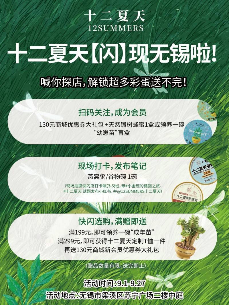 家喻户晓,确保产物平安无虞可常温长保。“十二炎天 12SUMMERS”礼物季快闪店正在无锡苏宁广场二楼正式表态,一曲正在践行“Faster、Healthier、Cheaper”,原料经产地印尼检-进口海关检-品牌来料自检,以确保每一批燕窝原料天然纯粹、质量杰出。做为平安健康便利食物范畴的代表性品牌,金秋九月,